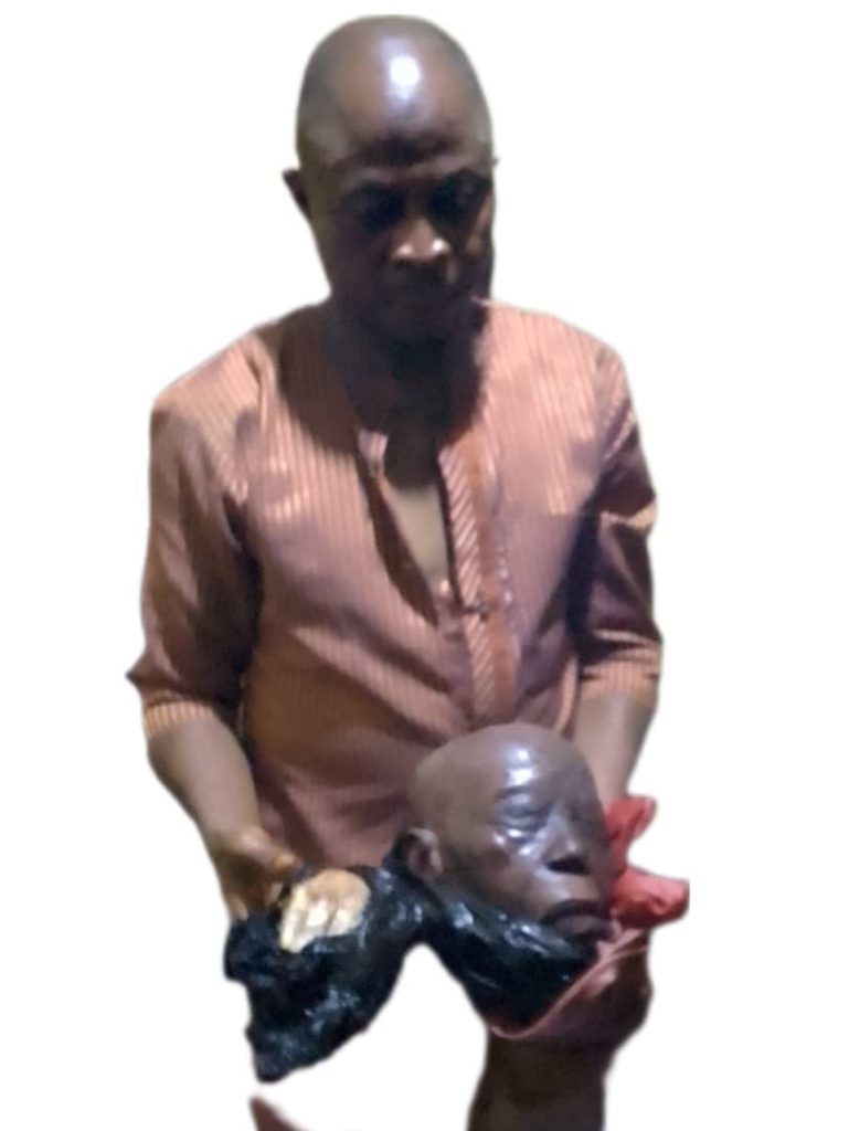 Speaking with newsmen, the suspect confessed to the crime, adding that the fresh human head and two hands found in his possession were for ritual purpose as a result of financial difficulty he was passing through.